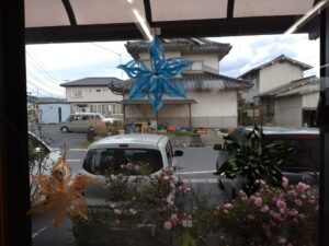 窓辺には色とりどりの手作りオーナメントが並び、